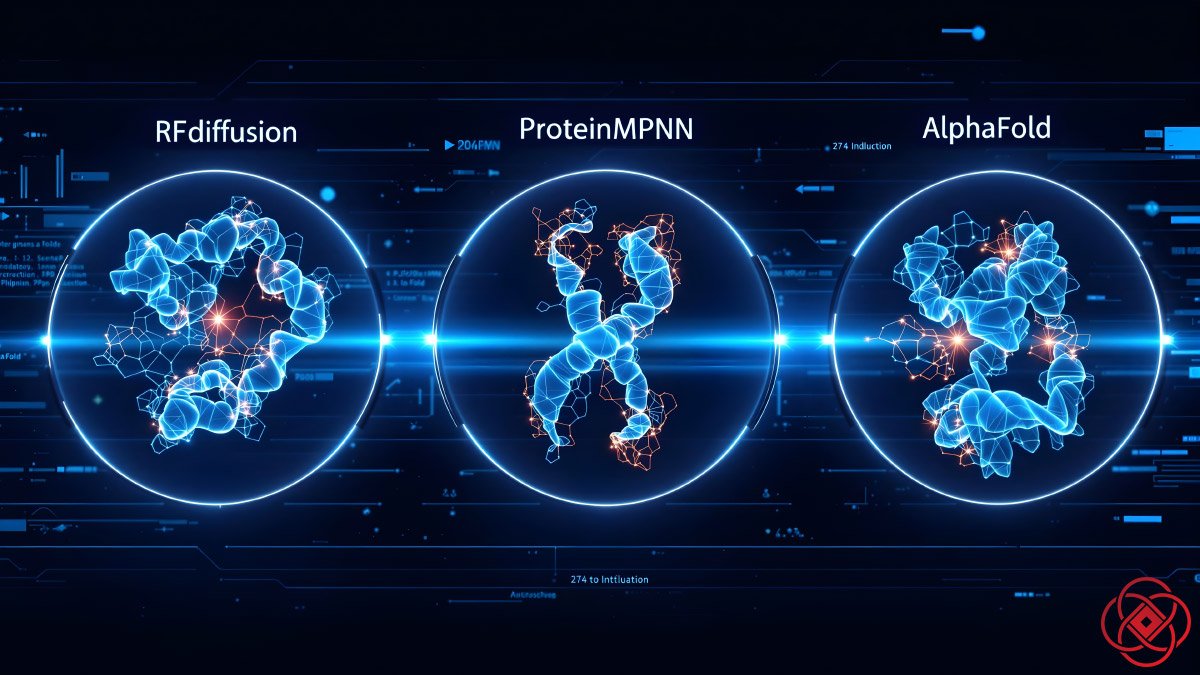 The revolutionary three-model AI pipeline represents a quantum leap in computational biology capabilities. Each model in the sequence contributes specialized expertise: RFdiffusion generates novel protein structures, ProteinMPNN optimizes amino acid sequences for stability and function, and AlphaFold-Multimer predicts how the designed proteins will interact with their targets in three-dimensional space.